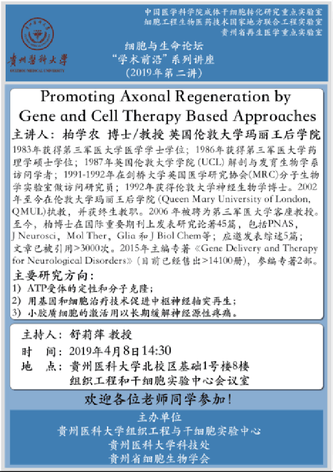 【讲座通知】Promoting Axonal Regeneration by Gene and Cell Therapy Based Approaches