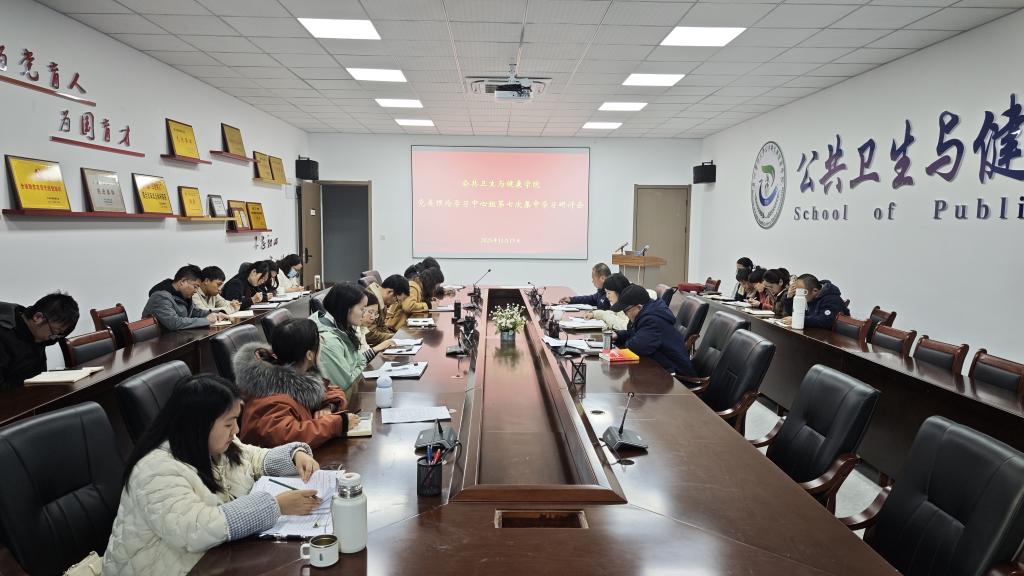 11月19日下午,我院党委理论学习中心组第七次集中学习研讨在公卫组团博雅楼C3-2-10召开,学院党委书记郑维薇主持,党委理论学习中心组成员出席,民主党派副院长、各平台负责人、科室、学系(中心)主任、党支部书记及支委列席参加。