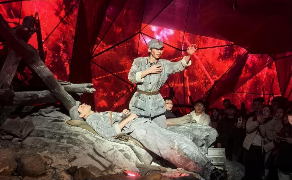 作为长征国家文化公园贵州段的标志性工程,红飘带以全域行浸式数字演艺为核心,通过虚拟现实、全息影像等前沿技术,将长征历史生动再现于学生眼前。跟随红旗前进的方向,师生们步入《红飘带・伟大征程》演艺区,随着一盏马灯微光渐亮,全息投影勾勒出的无名战士身影缓缓浮现,拉开了这场跨越时空的历史对话序幕。