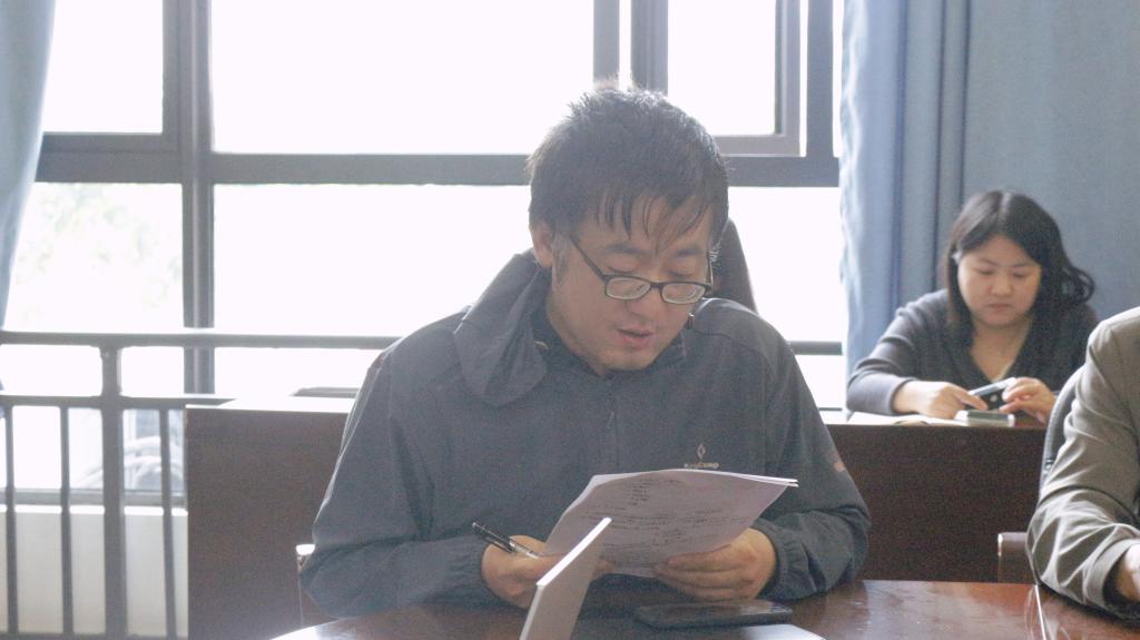 学院党委委员、副院长王大朋围绕学习主题作重点发言。学院纪委委员/学生科副科长/学生第二党支部书记原琦、学院纪委委员陶俊彦围绕学习主题作交流发言。